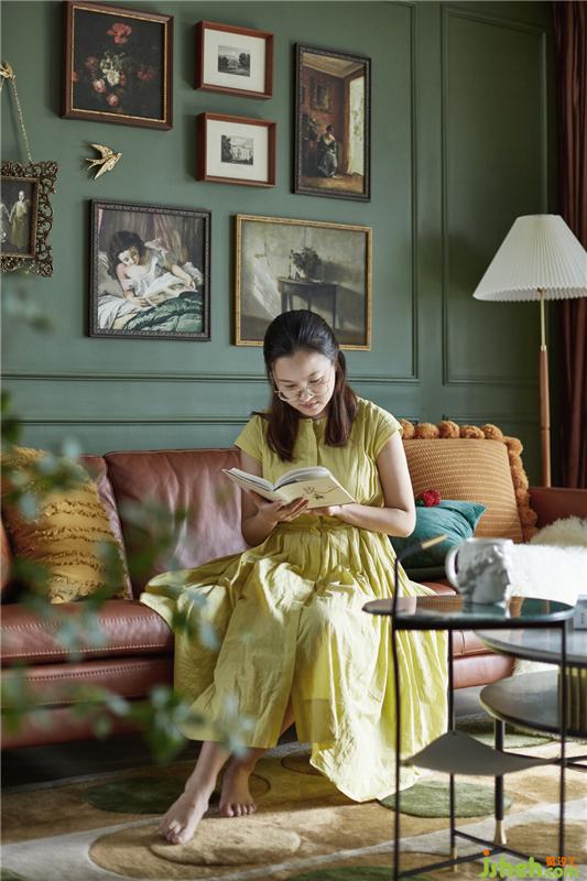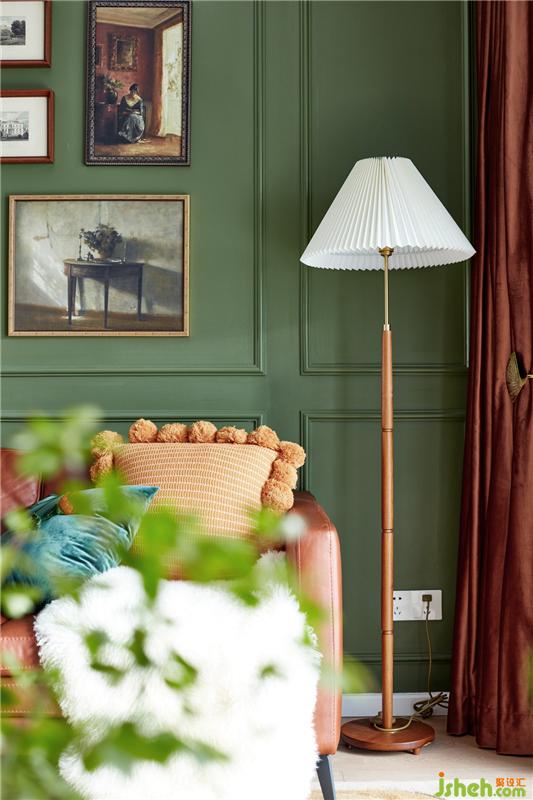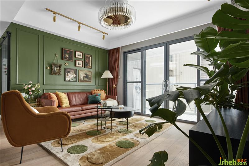 飽和度高卻又不失豐富感情的色彩總能讓人感受到濃郁的溫情??蛷d用色干凈簡約,裝修設(shè)計以復(fù)古綠色打底,飽滿的棕色、黃色、橙色為撞色,讓空間避免單調(diào)沉悶,拼色的地毯也增添空間的層次感與藝術(shù)感。
