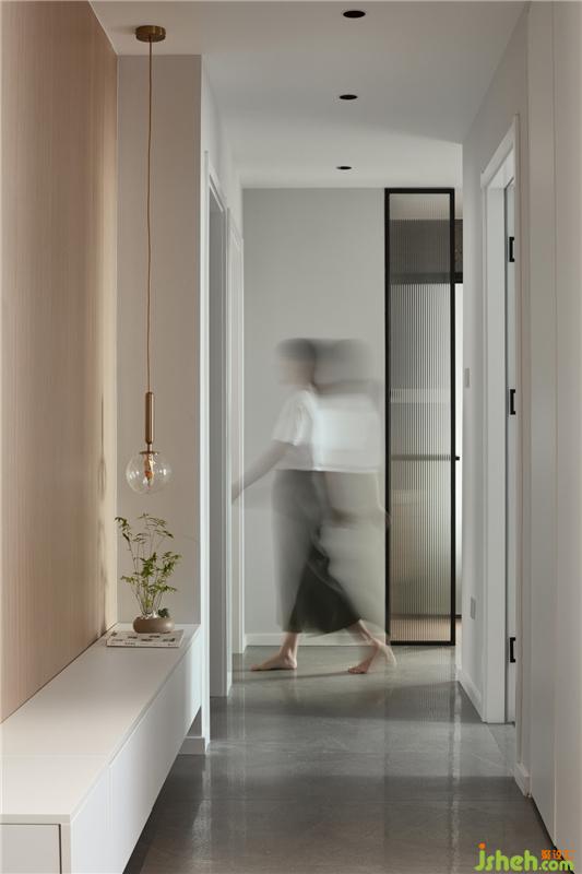 電視背景墻延續(xù)至過道,猶如一束月光,指引著我們踏進,輕柔舒適的休憩空間。