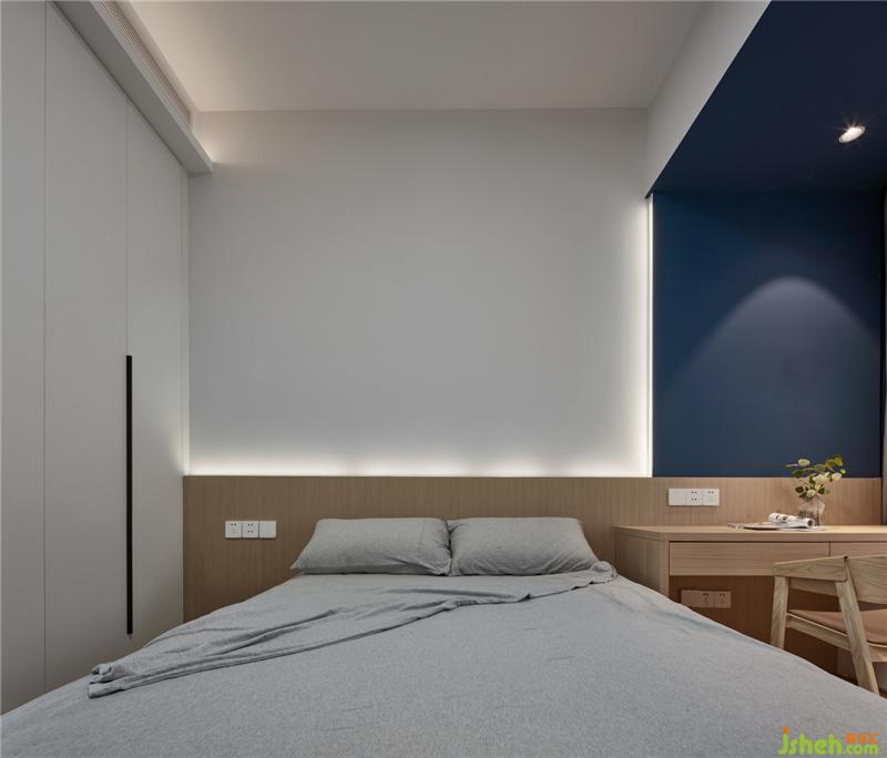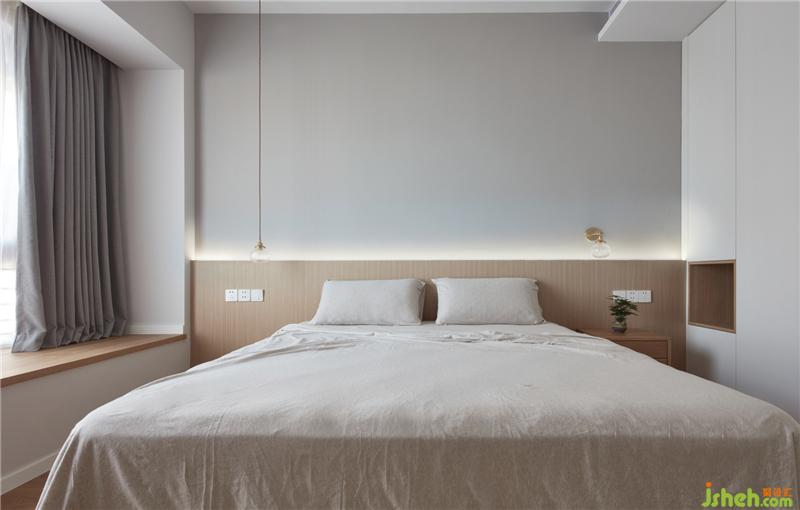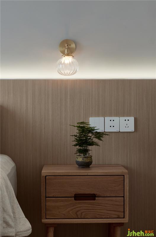 溫潤的木色、潔凈的白色,極簡溫柔的床頭燈,既對立又相互照應,打造“潤物細無聲”的效果,讓居住者在潛移默化中,拋棄雜念、放松身心。