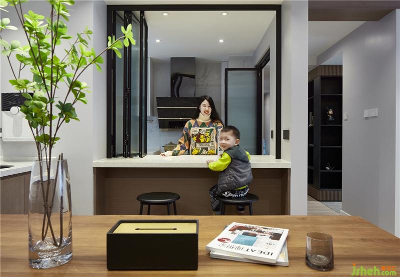 廚房門(mén)口亦裝有折疊玻璃門(mén),讓廚房在開(kāi)放式和封閉式之間隨意切換,且絲毫不影響采光,空間變得更通透。一把米,一瓢水,幾顆紅豆,慢慢熬煮,幸福的味道便層層疊疊由近及遠(yuǎn)地彌漫開(kāi)來(lái)。