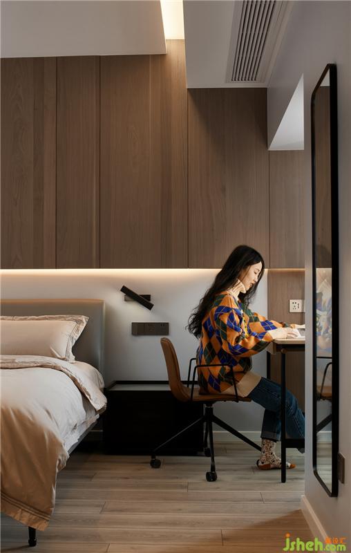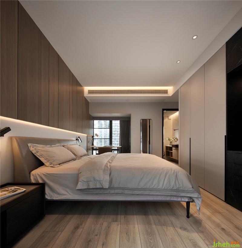 主臥的設(shè)計基調(diào)沉穩(wěn)安逸,關(guān)注人與空間,人與材質(zhì)和諧共處。