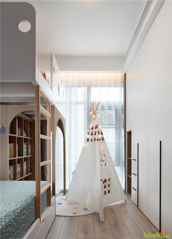 柔和的色調(diào)讓人倍感輕松,通過色彩對比使空間更加生動、活潑,打造閱讀區(qū)與玩耍區(qū),兩側(cè)的書架和收納柜可以放置常看的書籍繪本,幸福童年從這里開始,在這剛剛好的日子里,享受生活,享受童真。
