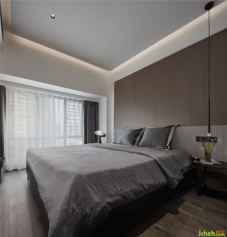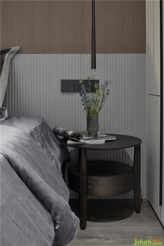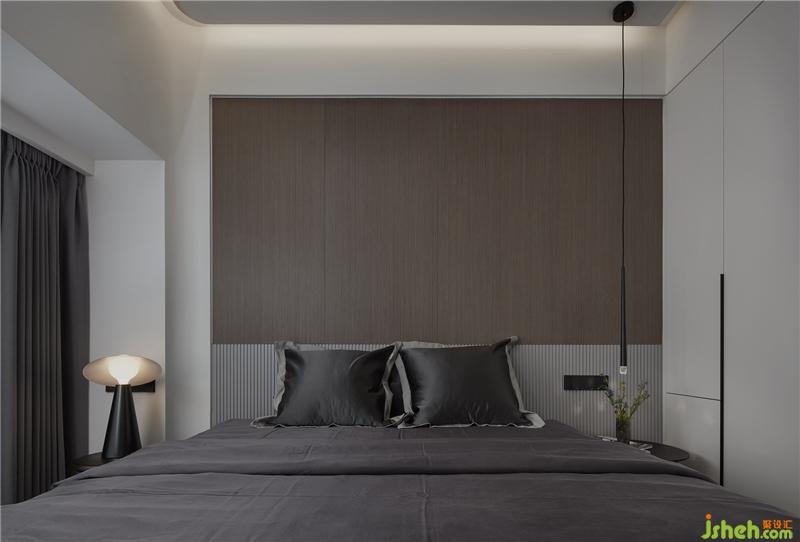 灰色與木色交匯出細(xì)膩雅致,配上床頭氛圍燈,增加休憩空間的品質(zhì)感,予人溫暖而細(xì)膩的慰藉,靜物之美。