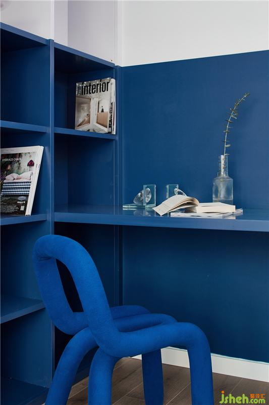 靜謐的深藍(lán)和溫柔純白,強(qiáng)烈的色彩對(duì)比讓空間層次分明,盡顯雅致的格調(diào)。