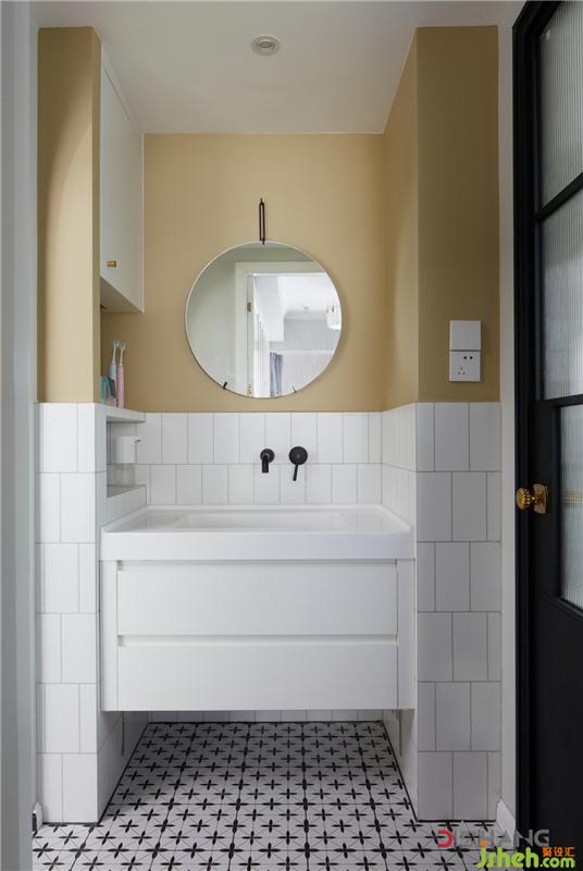 拱形門洞為空間增添幾分靈動感和趣味性,地面與玄關(guān)、廚房的黑白花磚相呼應(yīng),散發(fā)迷人的復(fù)古魅力。
