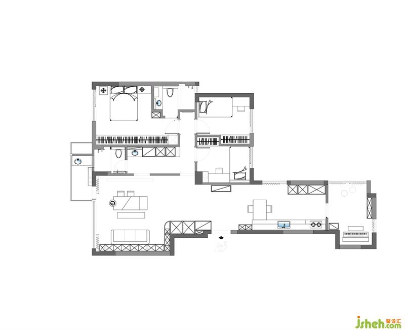 3、拱形門串聯(lián)零碎空間,家政區(qū)功能合并集中;