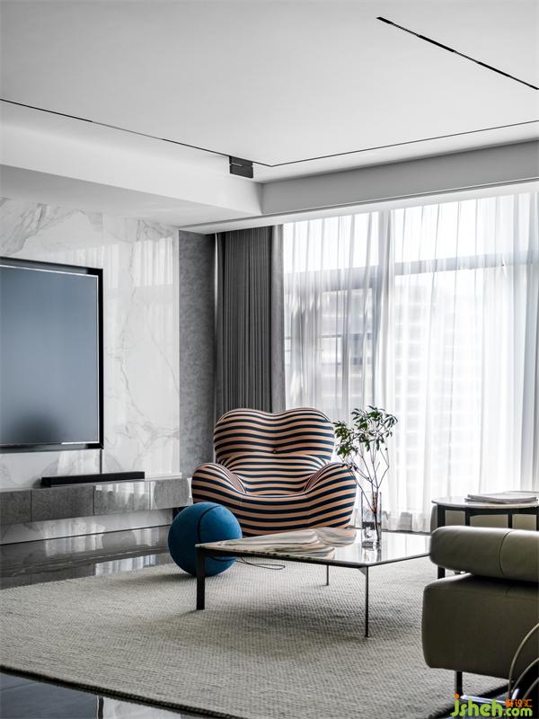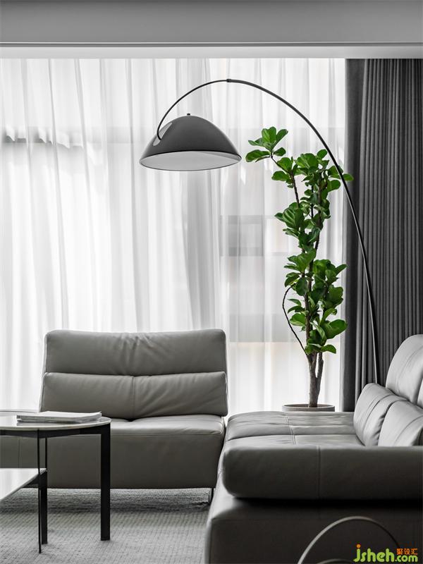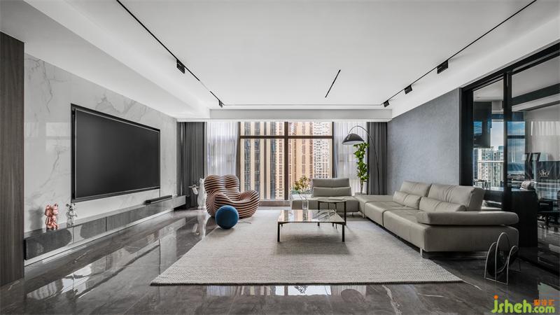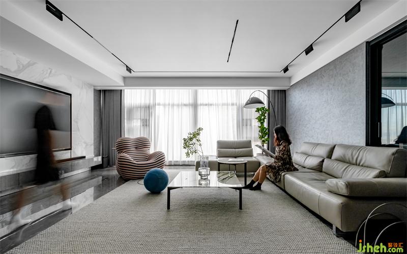 原戶型采光非常好,直接感受落地窗的陽光洗禮,灰色系作為空間主調(diào),深圳家居設(shè)計(jì)沉穩(wěn)優(yōu)雅的高級(jí)感,皮質(zhì)的L型沙發(fā),背后的區(qū)域作為書房,通鋪亮面大理石瓷磚,好似一片水波紋,磁吸軌道燈拉伸縱深感,還能實(shí)現(xiàn)多種光影效果。