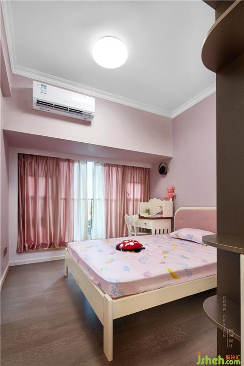 在色調(diào)上跟客廳統(tǒng)一協(xié)調(diào)。家私選用莫迪蘭色系,硬裝與軟裝在色溫上的碰撞,二者完美地銜接。