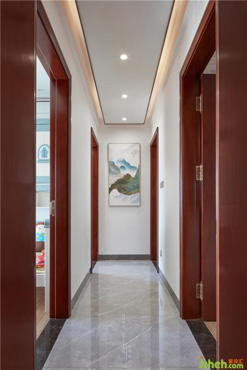 淺色的墻體顏色,以艷亮紅木色的木門作為點綴,猶如一座座高山聳立在眼前,讓整個空間充滿活躍。