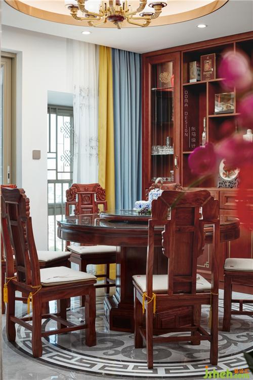 圓,是中國文化中一個重要的精神原型,是最初的宇宙生命意識,是中國藝術(shù)生命中不可或缺的支點,也是中國人內(nèi)心深處情感之向往與處事之原則。深圳裝修設(shè)計地面拼花外圈是圓的,象征著遼闊天地混沌;天花造型也是圓的,象征生活美滿幸福、愛永無止境。