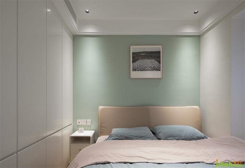 床頭背景使用了豆綠色,增強(qiáng)了臥室的一份生命力,其余大面積使用了米白色;天花采用了極簡(jiǎn)的走邊,避免了空間上的單調(diào)。然后燈光設(shè)計(jì)在兩側(cè)避免了直射床頭,同時(shí)在燈罩內(nèi)的細(xì)節(jié)上做了蜂窩網(wǎng)防刺光處理。