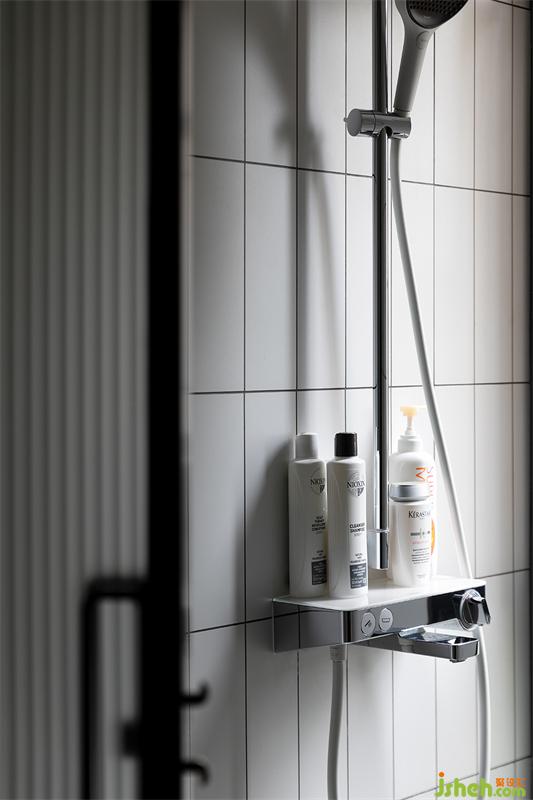 白色小磚的豎向鋪貼方式,讓這個(gè)狹小的空間視覺(jué)看起來(lái)更高聳,大氣。