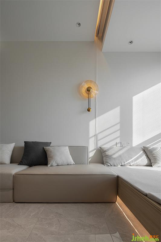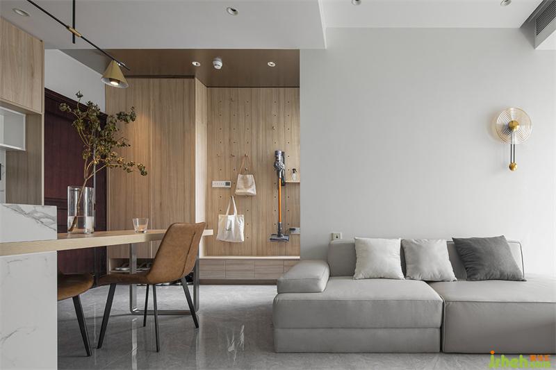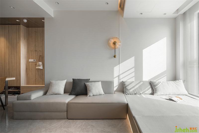 整屋都是以明亮的白灰色墻為主,明亮素凈,在視覺上可以擴(kuò)大空間,而且給人一種自由放松思緒。進(jìn)門望去就有個(gè)88寸的大屏幕,沒錯(cuò),小戶型也值得擁有大屏幕,在家就能坐擁影院。