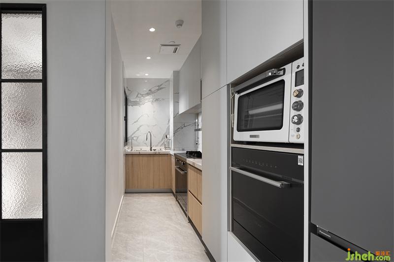 深圳家居設(shè)計(jì)所有的廚房電器和集成灶完美地融合在櫥柜里面,整齊的收納方式以及干凈明亮的櫥柜顏色給人一種舒適感。