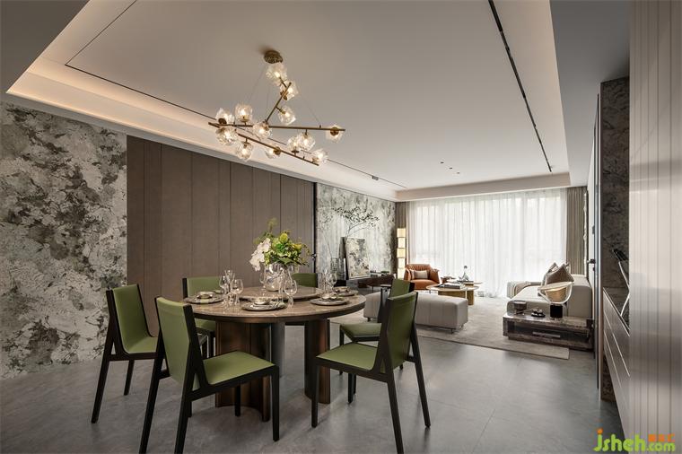 餐廳空間通透大氣,一體式的布局設(shè)計讓交流動線更加流暢。樣板間設(shè)計大理石餐桌與墻面互相呼應(yīng),華麗和內(nèi)斂的兩極碰撞,留出恰到好處的余韻。生機盎然的綠色點綴其間,俗世尋常躍然紙上。
