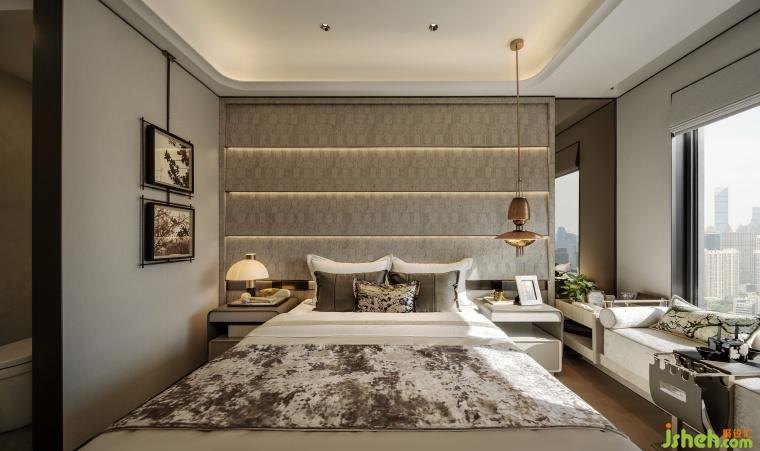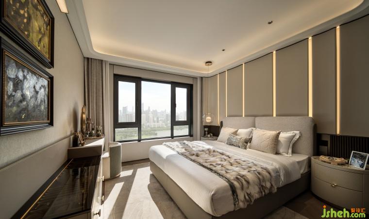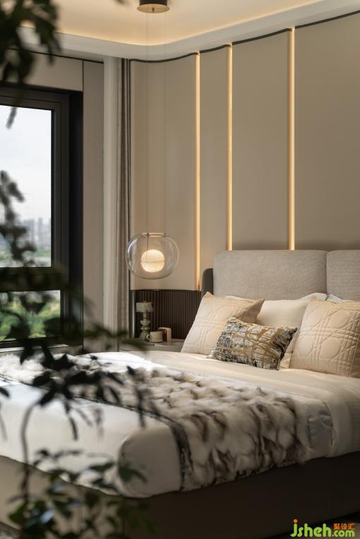 次臥延續(xù)靜謐空間語言,塑造出兼具格調(diào)與溫度的休憩場域??椢锏娜彳洝⒔饘俚木?、木質(zhì)的溫潤,共同構(gòu)建起多功能生活場景。從休憩到觀景、品茗,空間每一處皆訴說著現(xiàn)代輕奢的優(yōu)雅內(nèi)核,讓居者在細膩氛圍中,遇見生活的從容與詩意。
