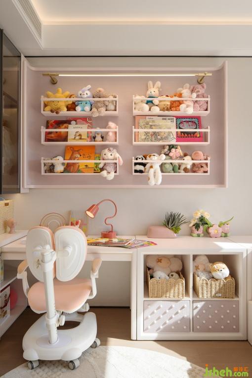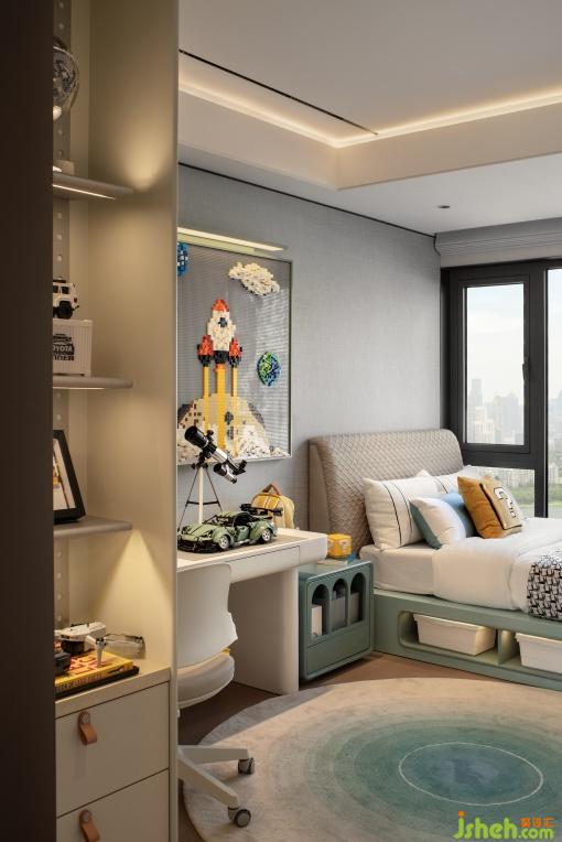 兒童房是想象力迸發(fā)的秘密基地,男孩房以樂高為主題搭建學(xué)霸成長空間,女孩房以毛絨玩具創(chuàng)造粉色繪夢屋,結(jié)合衣物與玩具收納系統(tǒng),功能與童趣在設(shè)計中達成微妙平衡。