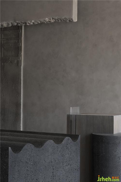 設(shè)計師很在意時間跟空間的對話關(guān)系,空間中用到的各種材質(zhì)和設(shè)計手法,不僅僅像在表達對空間的探索,更像是在我們朝著未知未來的猜測,對物質(zhì)存在的虛擬構(gòu)想。原木、水泥、金屬和洞石這些形象材質(zhì),將會成為老化的媒介物品,它們并不只是在懷舊,還是時空游走于過去和未來之間。