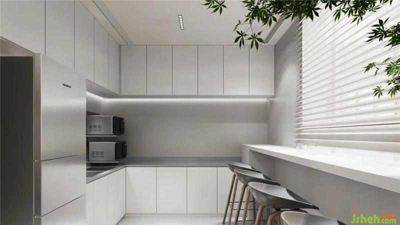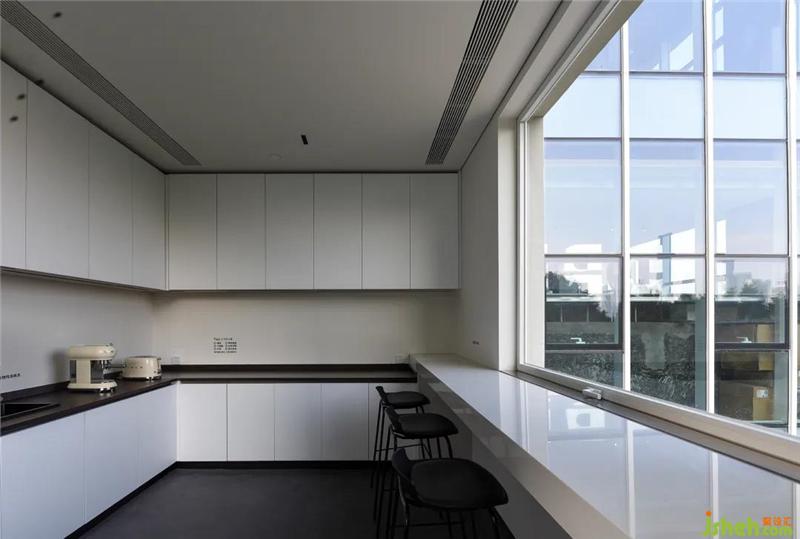 DPD辦公總部地理位置的優(yōu)勢,將廣州珠江邊的景色盡收眼底,整個空間中視野風景最好的位置是茶水間區(qū)域。設(shè)計師早期希望把它規(guī)劃成BOSS房和大會議室,但在由于該區(qū)域有排污系統(tǒng),風水學上不適宜作為公司重要區(qū)域,最終調(diào)整成茶水間,采用大面積的玻璃窗加強光線通透,員工可以在休閑放松的時候坐在茶水間,欣賞珠江景色,身心得到放松。