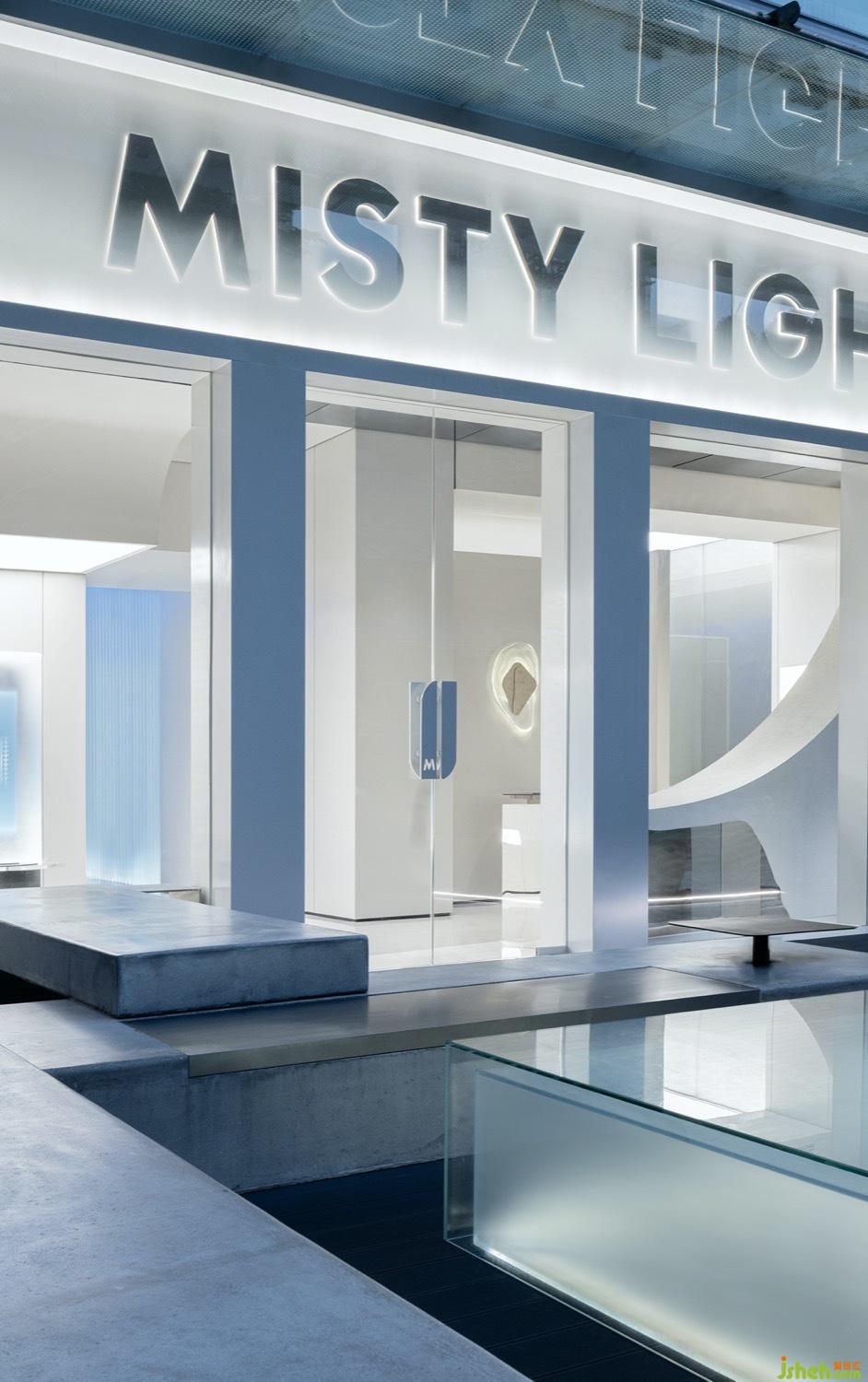 于屋外看,一個(gè)朦朧的引人探究的白色盒子安靜地佇立著,每一個(gè)試圖探索霧中光境的旅人因步步接觸與走近而得到了答案和共鳴,不停地?fù)荛_(kāi)迷霧,靠近光源,探索虛幻的維度,直到他們能夠趕得上,碰得見(jiàn)。室內(nèi)設(shè)計(jì)師