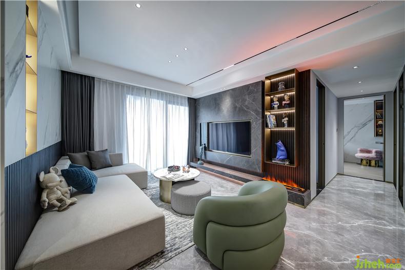 客廳以現代風格為框架,融入輕奢的金屬質感