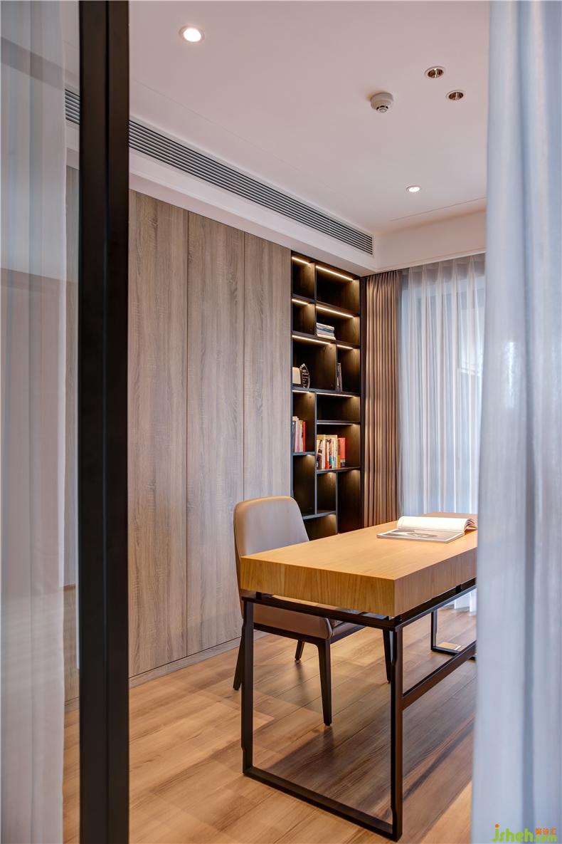 書房又稱書齋,齋者,潔也,有高潔清雅之意。以木色的簡(jiǎn)潔樸質(zhì)為主脈絡(luò),空間不失內(nèi)斂穩(wěn)重