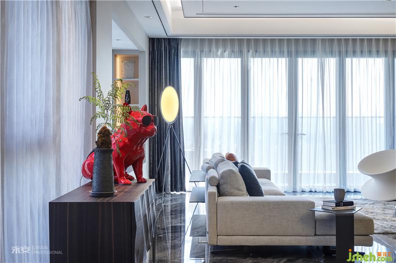 一抹亮紅在高級(jí)灰的中性色調(diào)中跳出,來自法國(guó)知名潮牌KAWOO的Jarre AeroBull音響,更為客廳躍入幾分活潑與靈動(dòng)室內(nèi)設(shè)計(jì)師