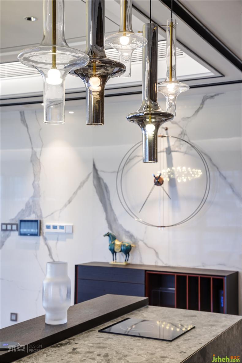 吧臺(tái)上方復(fù)古元素的吊燈,光芒永恒而溫暖;遠(yuǎn)處有條不紊轉(zhuǎn)動(dòng)著的時(shí)光,是來自西班牙NOMON掛鐘室內(nèi)設(shè)計(jì)師