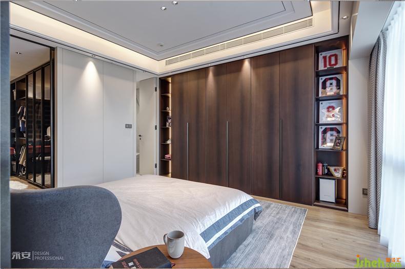 床尾的墻面做成了咖啡色的木紋柜,男主人是AC米蘭隊(duì)的粉絲,收藏的簽名戰(zhàn)衣和小紀(jì)念品都呈放在柜子右側(cè)的陳列室內(nèi)設(shè)計(jì)師