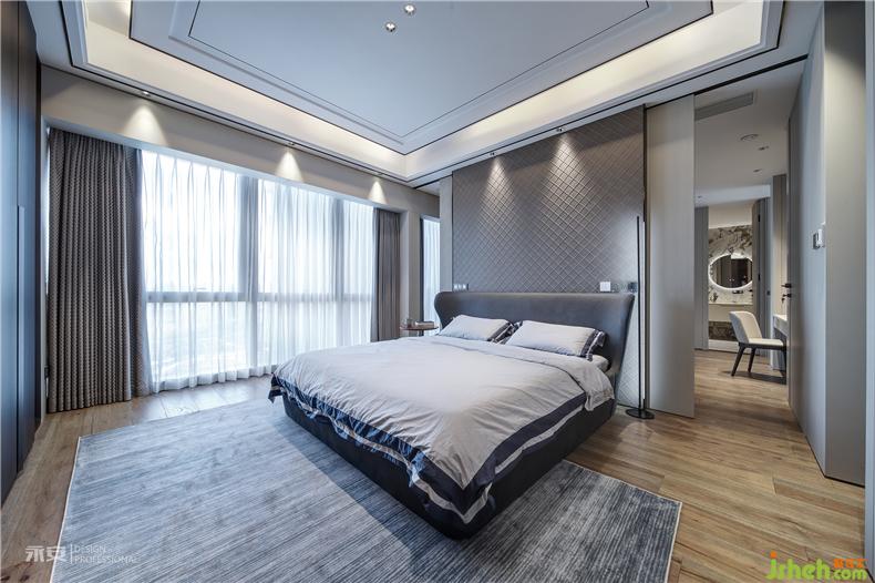 舍棄繁雜的設(shè)計(jì)元素,主臥以營造柔和放松的休憩環(huán)境為目的,自然的木色地板搭配簡雅的格調(diào)灰,通過線與面的幾何構(gòu)建、光與影的交織,足以體現(xiàn)空間的立體美感與高級感室內(nèi)設(shè)計(jì)師