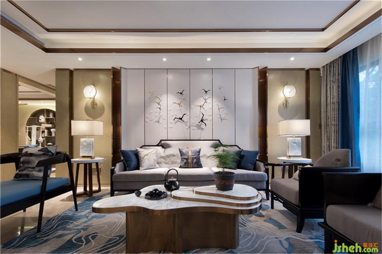本案定位于新中式風格,設(shè)計師以“山水如畫,層巒疊翠”為設(shè)計靈感,融合傳統(tǒng)和現(xiàn)代、東方和西方的文化元素,詮釋居主理想生活的品質(zhì)和樂趣,營造極具人文、禪意的舒適空間。
