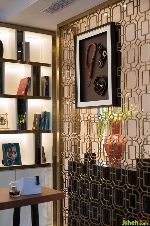 屏風(fēng)上的裝飾掛畫以愛馬仕主題為靈感,結(jié)合男主人對于賽馬運(yùn)動的熱愛,提取品牌經(jīng)典元素——馬和馬具文化進(jìn)行創(chuàng)作,營造一個(gè)具有藝術(shù)氣息和獨(dú)特品味的書房空間。