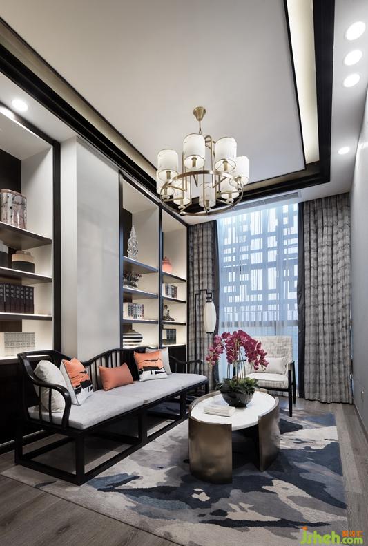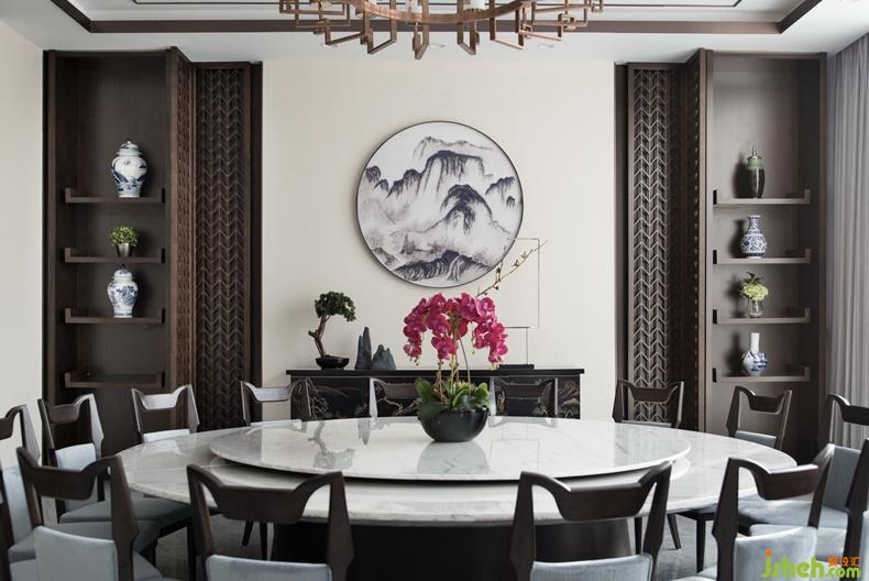 休閑區(qū)以藍色調寫意畫作為背景,不僅凸顯空間的優(yōu)雅詩意,且為空間留一份白,讓空間在傳統(tǒng)的木色中不乏輕盈感。