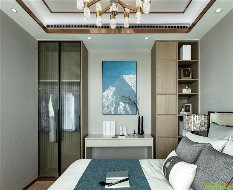 主臥空間,融入東方禪意哲美,素白層巒的山紋與藍(lán)的布局通達(dá)無限心境,樣板房設(shè)計(jì)是靜待心安的視覺感染,更是久處不厭的靈魂陪伴,棲息身心。