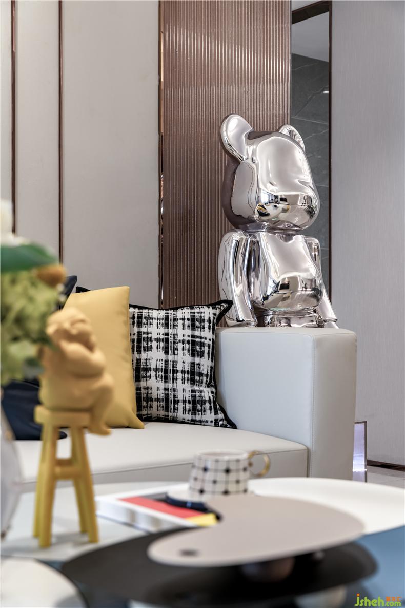 充滿現(xiàn)代風(fēng)格的的床頭柜,搭配透明的金屬、琉璃床頭燈,它們光影斑駁,樣板房設(shè)計余輝細(xì)節(jié)都光彩亮麗,出現(xiàn)多層的材質(zhì)變化