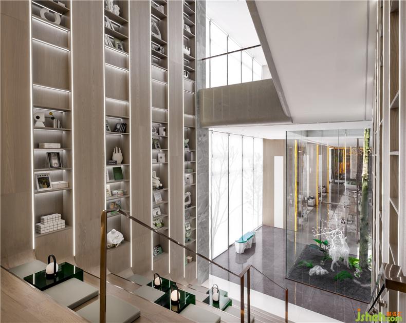 一至三層的意趣是整個(gè)空間品位的基調(diào),大到空間框架上虛實(shí)相生的視覺(jué)張力,營(yíng)銷(xiāo)中心設(shè)計(jì)小到充滿(mǎn)藝術(shù)感的飾品雕塑,每一種寫(xiě)意氛圍的植入,都是為空間的情緒個(gè)性來(lái)助興。