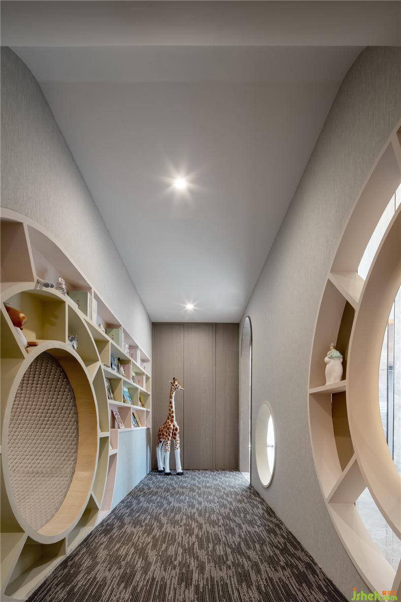 以“夢(mèng)幻時(shí)光”為主題的兒童區(qū),以淺色系為主要點(diǎn)綴色,以圓形為主要形態(tài),通過(guò)這條通道便是泡泡區(qū),與主題呼應(yīng),充滿(mǎn)童趣和回憶,也給孩子們留下了永不幻滅的時(shí)刻