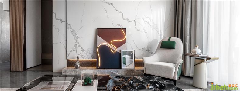 設(shè)計用精妙的手法,借助家具、裝飾的曲線與色彩,盡顯空間的優(yōu)雅魅力與生活的時尚趣味。舒適質(zhì)感的白色沙發(fā)與單椅,不經(jīng)意間點綴少量金屬與藝術(shù)品。獨有的光澤巧妙地穿插融合,使空間的內(nèi)涵與品質(zhì)得到豐富。