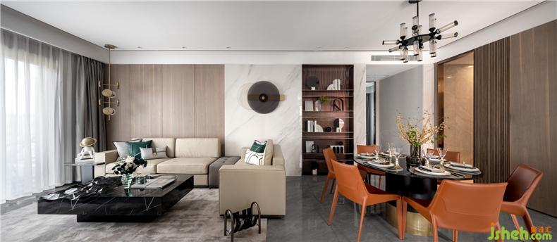 餐廳與客廳圍繞家人們的交流與共享,闊達(dá)通透的開放式設(shè)計,讓兩者有度溝通,處理成節(jié)奏分明,簡練平靜的線條,清晰明亮的結(jié)構(gòu),強(qiáng)調(diào)了縱深感,帶來沉穩(wěn)而不張揚(yáng)的美感。