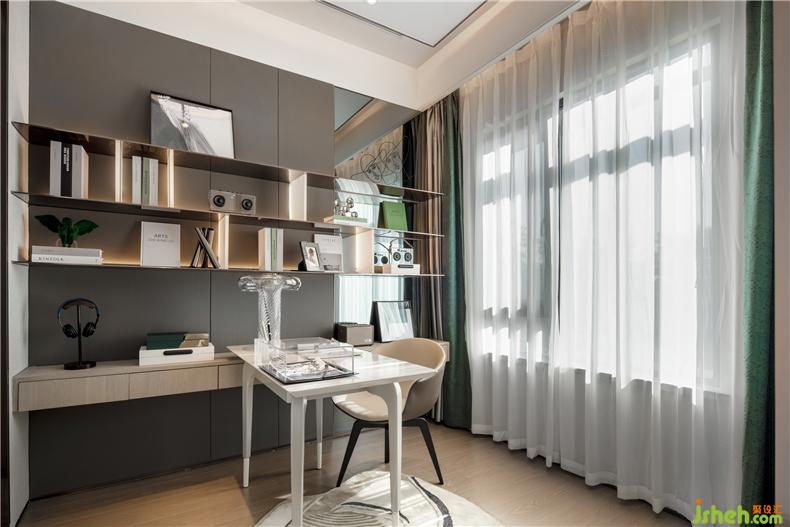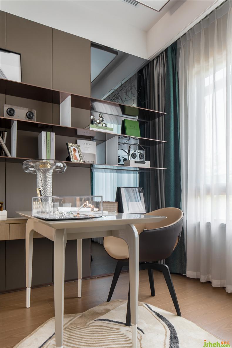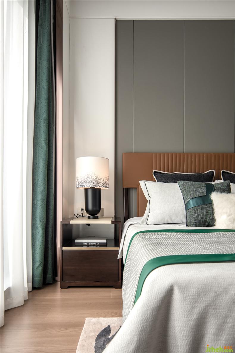 次臥進(jìn)門處以衣柜作為遮擋,以塊面與線條的和諧搭配,以平和的材質(zhì)色彩,營造出沉謐簡寧的整體氛圍。