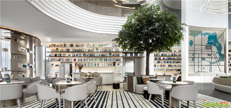 在書吧與洽談區(qū)之間,還有直接與洽談區(qū)相連的水吧,使得空間感更為豐富,前來看房人們在此處空間能盡享文化與休閑的意趣,讓整個(gè)營銷中心更像是一處休閑娛樂之所,集生活與品味于一體。