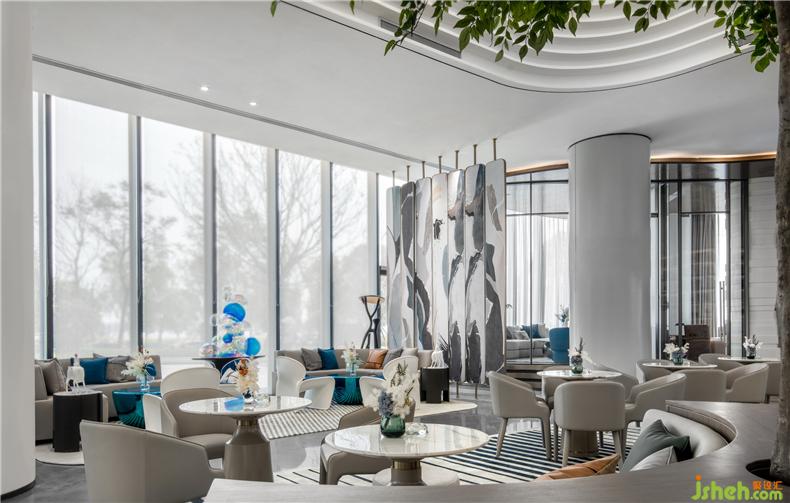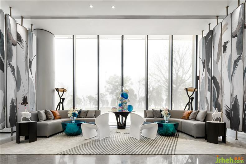 亞克力材質(zhì)的泡沫裝置工藝繁復(fù),光澤透亮,充滿現(xiàn)代感,讓人仿佛置身于充滿夢(mèng)幻色彩的湖泊海洋,營(yíng)銷中心設(shè)計(jì)滿室旖旎。沙發(fā)一側(cè)的小型藝術(shù)裝置,是空間的雕塑感的延伸,充滿了寧?kù)o獨(dú)特的氣質(zhì),與整個(gè)空間融合,產(chǎn)生一系列微妙的變化。