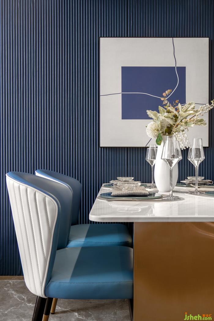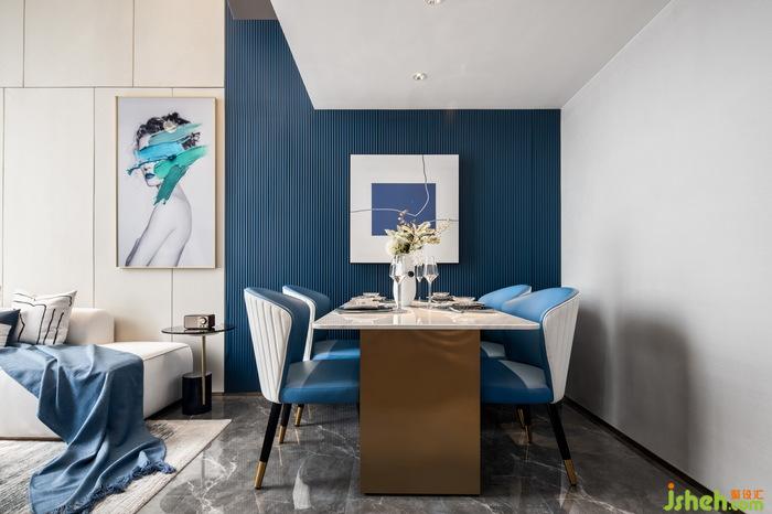 減去多余的負(fù)累,生活才會(huì)更加輕盈。餐廳的設(shè)計(jì)簡約精致,公寓樣板房設(shè)計(jì)只藍(lán)白二色的裝飾畫簡單卻充滿格調(diào),靠墻放置的巖板餐桌,搭配香檳色的金屬材質(zhì)桌角,看似簡單的風(fēng)格下,不經(jīng)意間透出一絲驚喜,讓人驚艷