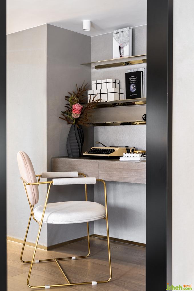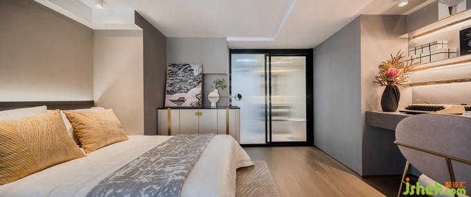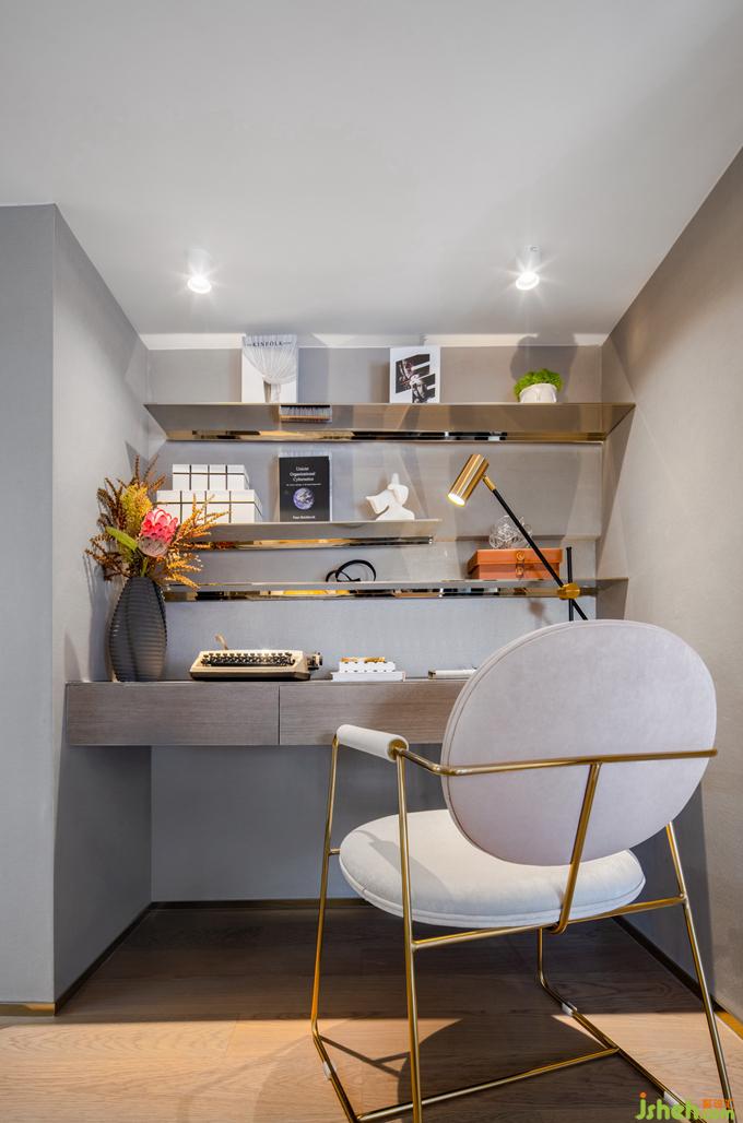 上至二樓,主臥的空間優(yōu)雅又不失精致,開(kāi)闊的休息區(qū),精致的衣帽間,以及定制的辦公桌,公寓樣板房設(shè)計(jì)不同功能性的混搭,讓空間迸發(fā)出更多想象的空間,讓家不僅成為物質(zhì)層面的居室,更是心靈的倚盼所在