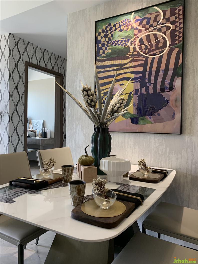 藝術(shù)掛畫(huà)作為空間的點(diǎn)睛之筆,讓淡雅的用餐環(huán)境多了一種趣味感。