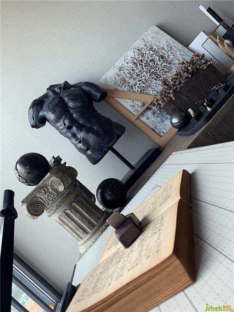 建筑擺件延續(xù)都市叢林主題,做舊的書(shū)本與暗黑系雕塑,