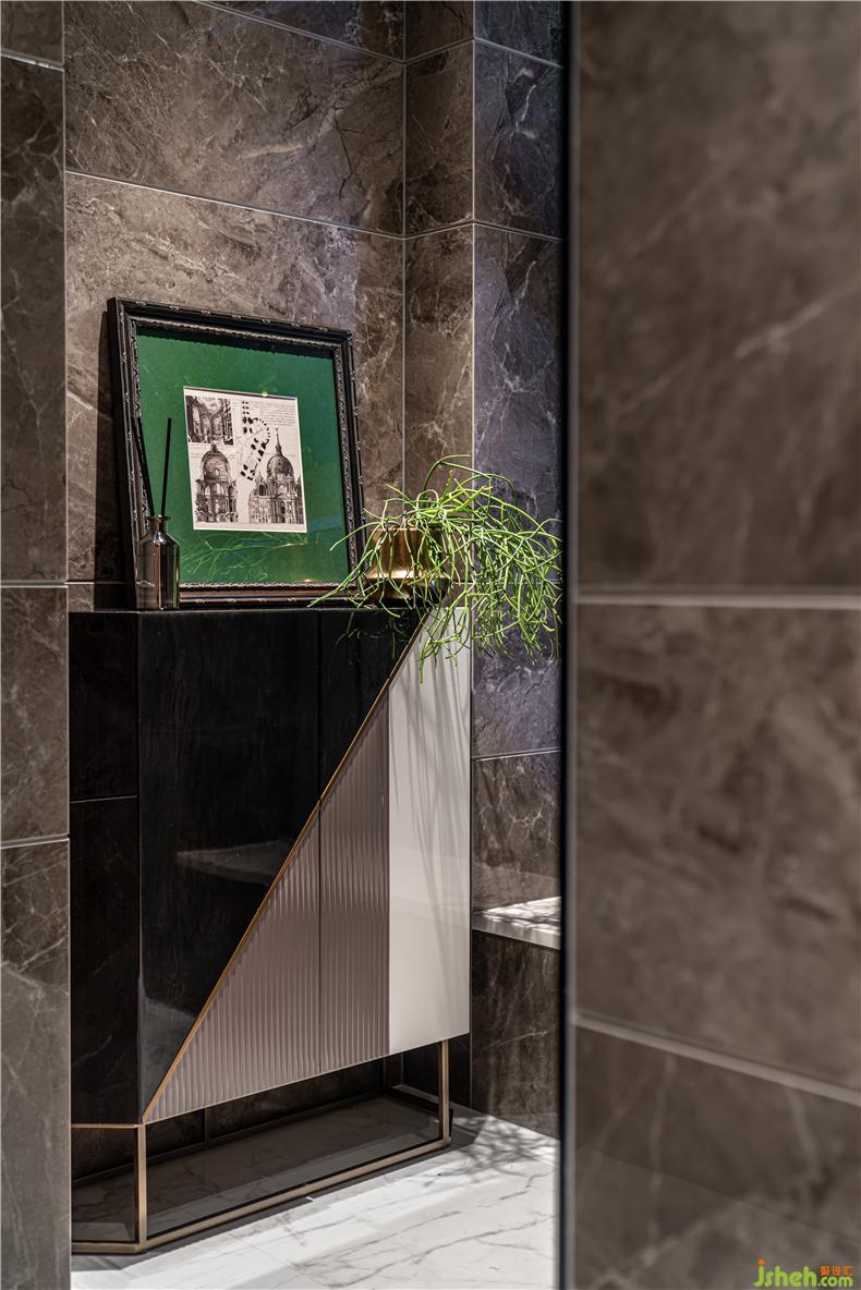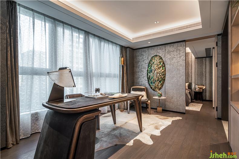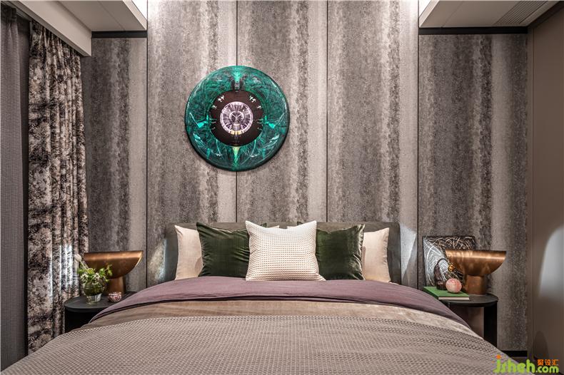 散落在床頭柜上,床邊櫥柜裝飾,不經(jīng)意間突出了主人的生活體驗(yàn)和藝術(shù)品位。樣板房設(shè)計(jì)這里不僅有歐洲回收的銅槍、小瓶子等,而且還有抽象畫作為裝飾和掛件,敏感的床上用品和家具質(zhì)感,以提高空間的質(zhì)量.
