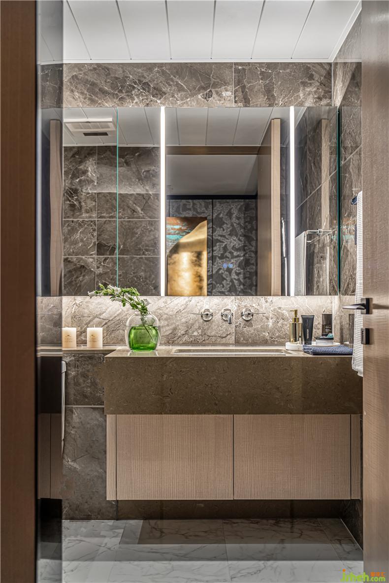主人房延續(xù)藝術(shù)長(zhǎng)廊的主體風(fēng)格,原木氣質(zhì)輔以灰色中性色,于對(duì)比中顯出和諧。天鵝絨背板裝飾的BASTER大床,如復(fù)古綠大沙發(fā)一般,彰顯意式的雍容舒適;造型獨(dú)特的床頭燈,彌漫獨(dú)特的藝術(shù)風(fēng)韻.
