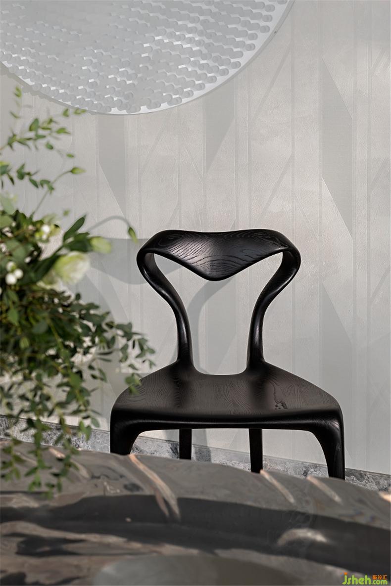 偏廳手工澆鑄的鉑晶茶桌,其底座的曲線(xiàn)設(shè)計(jì)極具雕塑感,與純實(shí)木一體雕的Dommus椅子共同營(yíng)造前沿會(huì)客廳,每把椅子的倒流都有細(xì)微的變化,優(yōu)雅圍繞在桌邊。