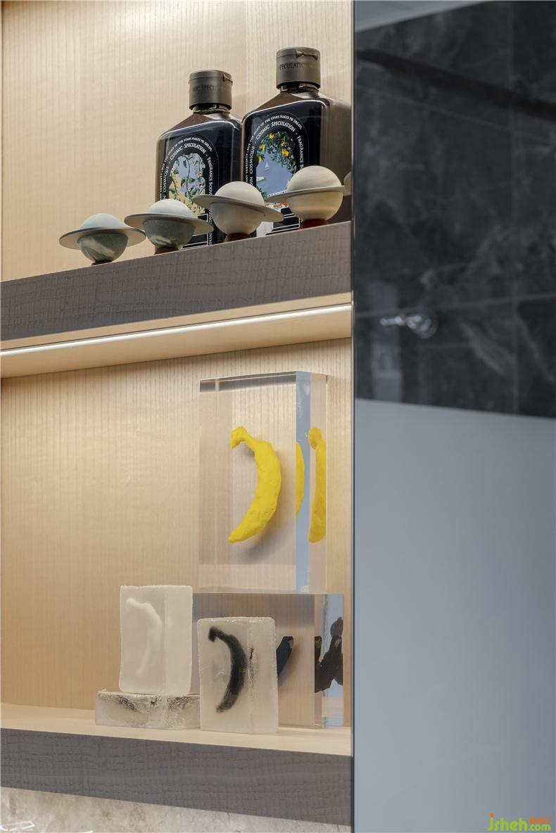 新貴們都是資深的‘時尚客’。他們對衣裝絕不盲從,自有一套審美,與此同時,他們的時尚品位又絕不限于衣服鞋品,各類潮流手辦亦是當(dāng)代都會新貴的必收藏品。 設(shè)計師將一間大尺度的步入式衣帽間打造成多功能收納空間,不僅是時裝廊,也是都會潮流‘玩家’的手辦收藏室,靜心貯藏的服飾與藏品,陳列規(guī)整,便于挑選與鑒賞。